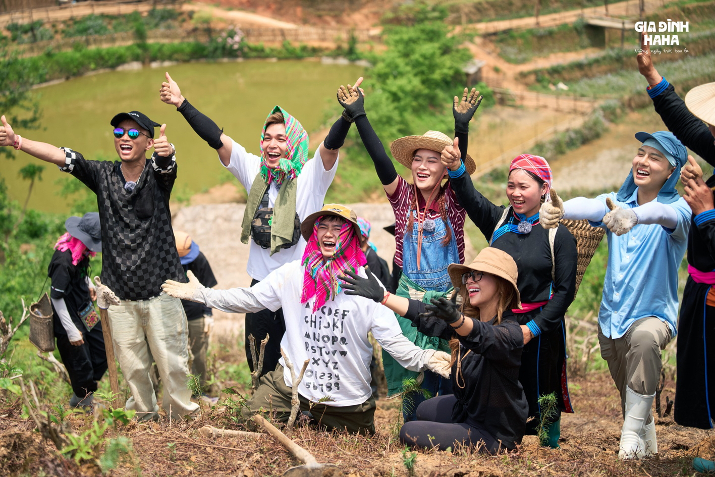 Images of highland women carrying seedlings alongside the cast and crew symbolized the harmony and connection between people and nature. Tree planting has long been promoted by organizations and individuals. Alongside shows like “Hanh trinh ruc ro” and “2 Ngay 1 Dem”, “Gia Dinh Haha” has spread positive messages about protecting the environment and nature.