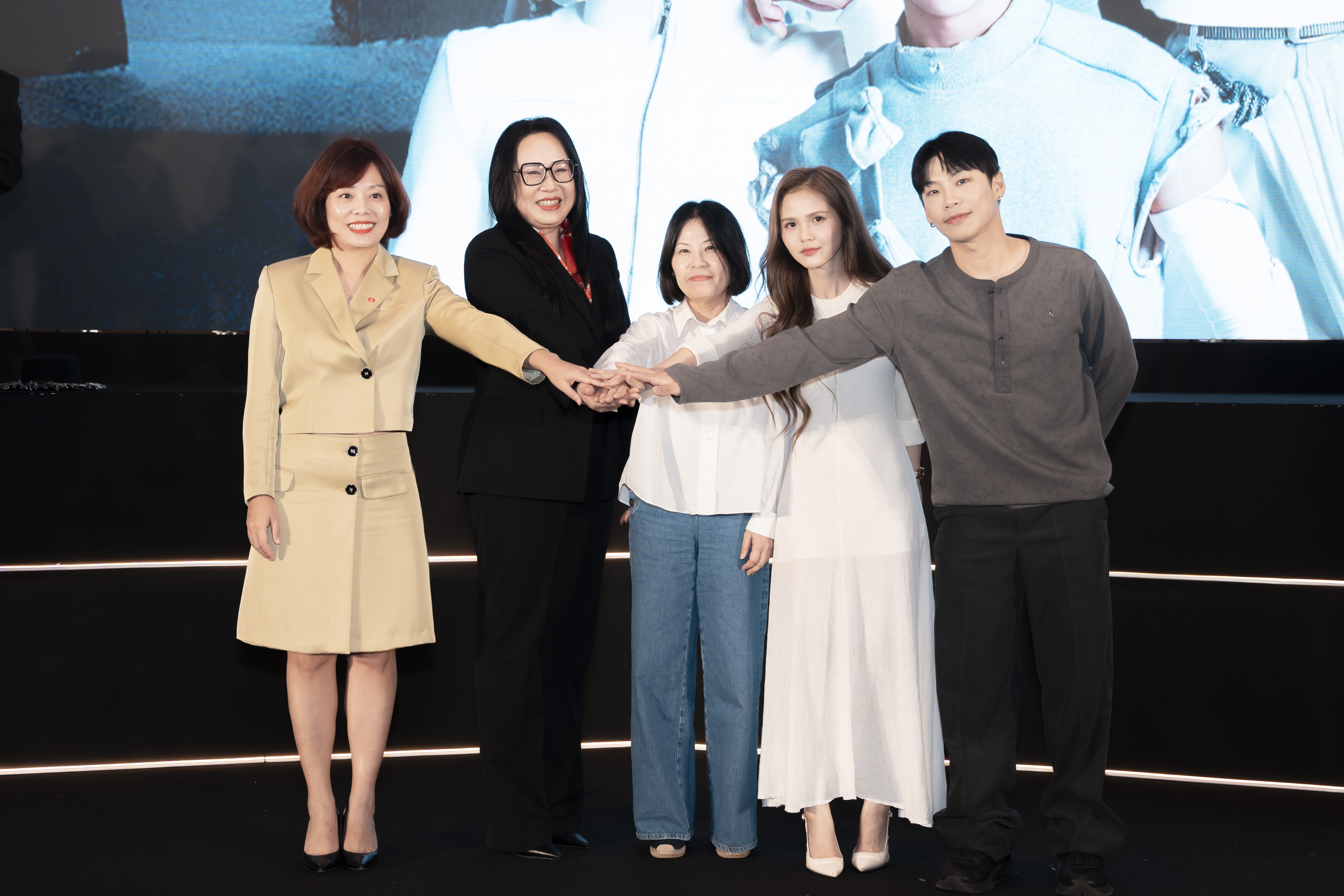 (From Left to Right) Nguyễn Vân Linh – Deputy Chief of Retail Banking Group Officer at Techcombank; Ngô Thị Vân Hạnh – Chief Executive Officer (CEO) of YeaH1 Group; Angela Pong – General Manager of Sony Music Entertainment Vietnam; Nguyễn Quế Tiên – Executive Director of the Digital Content Division at YeaH1 Group, and Deputy Chief Executive Officer (Deputy CEO) of MangoPlus; Ryu.D – Chief Executive Officer (CEO) of HiDirector Entertainment.