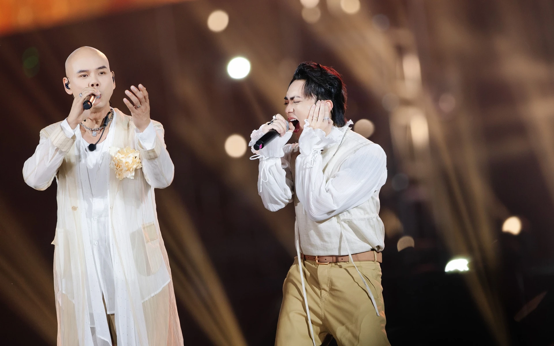 Though many performances still used playback, the brothers made clear efforts to sing live, ensuring the backing tracks did not overpower. New arrangements kept the music fresh for instance, Net featured spontaneous bossa nova sections, while Soobin’s rap over a rock base created a striking contrast. A standout moment came from the theatrical duet Thuan nuoc nuoc day thuyen and Son thuy khuc, reimagining the legendary battle of Son Tinh and Thuy Tinh.